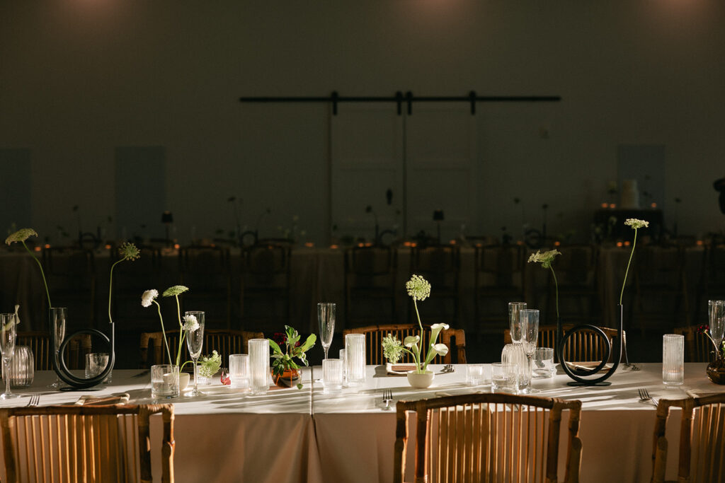Lighting changes can even signal transitions. During toasts, we leave the lights bright and inviting and then subtly dim the light rings during dinner. We have lights in the eves that we started calling the WeHoo Lights. As I just mentioned, throughout dinner, we dim the light rings, and shut them off as we turn on the WeHoo Lights in the color choice of the couple. You can almost hear the sound of the crew right now reading this, right? WEHOO!!! These cues make your reception flow beautifully from one moment to the next.