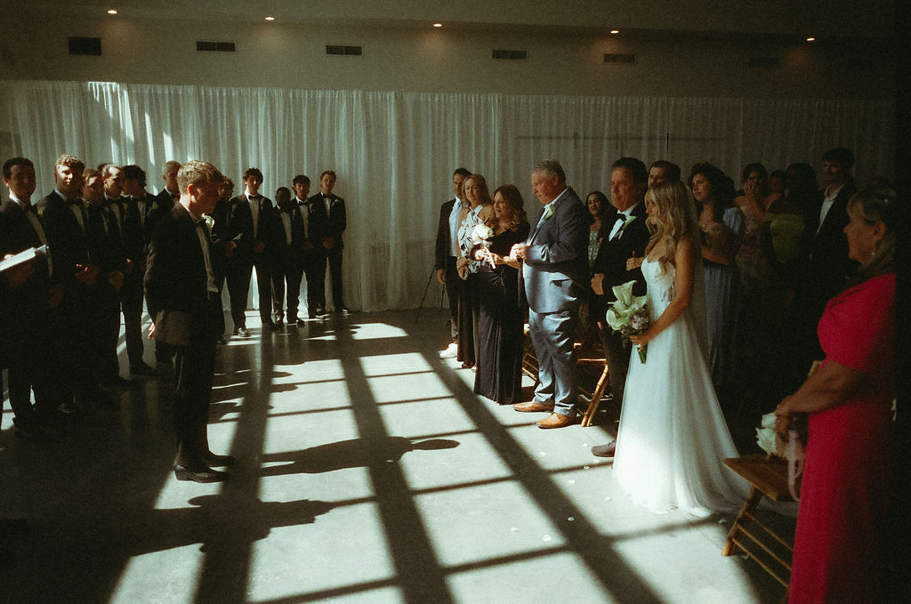 We love how it blocks the harsh light, but allows for the beautiful view to still be seen. We lift them once the harsh light is gone so that everyone can enjoy the sunset. Pro tip: you definitely want to be sure to have a pause in your timeline so that everyone can enjoy the view.